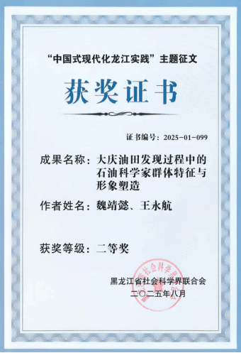 获奖成果名称:大庆油田发现过程中的石油科学家群体特征与形象塑造